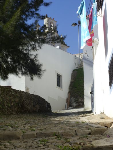 [Do Livro das Fortalezas, de Duarte de Armas. Vista do Norte]A capela, a que presentemente mais se chama igreja, situa-se no ponto mais alto (cota 37), num pequeno cerro que domina a vila.